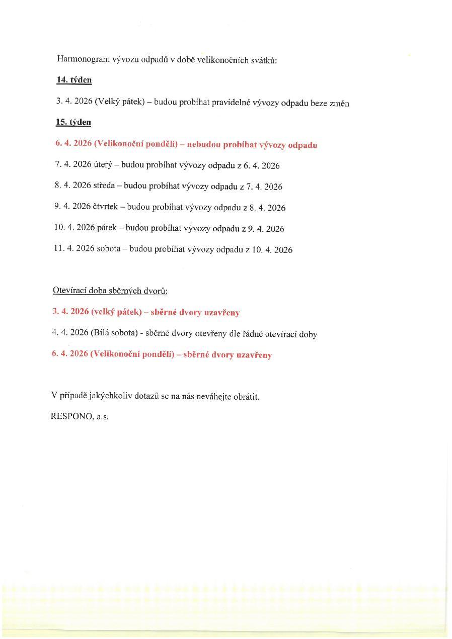 Svoz odpadu v době velikonočních svátků